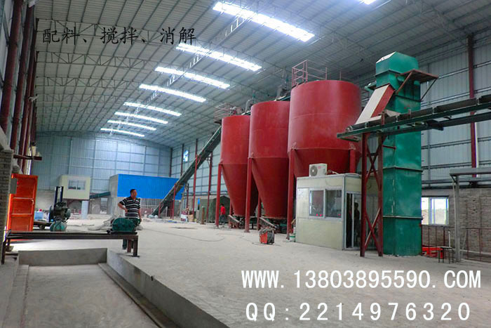 下面是我公司為廣東海豐公司配置的年產(chǎn)1億塊灰砂蒸壓磚生產(chǎn)線設(shè)備生產(chǎn)現(xiàn)場(chǎng): 1、配料、攪拌、消解階段