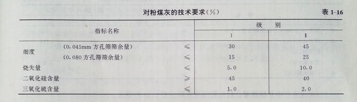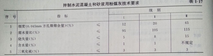 (1)拌制水泥混凝土和砂漿時(shí),作拌和料的粉煤灰成品應(yīng)滿足表1—17的要求。