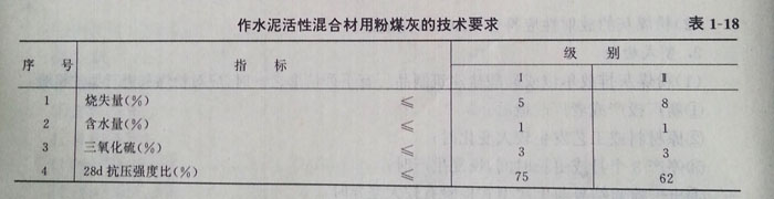 (2)水泥生產(chǎn)中作活性混合材的粉煤灰應(yīng)滿足表1—18的要求?!?br />