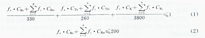 (2)建筑材料用工業(yè)廢渣的放射性物質(zhì)限制標(biāo)準(zhǔn)為:其中226Ra、232Th、40K的放射性活度應(yīng)同時(shí)滿足式(1)和式(2)。